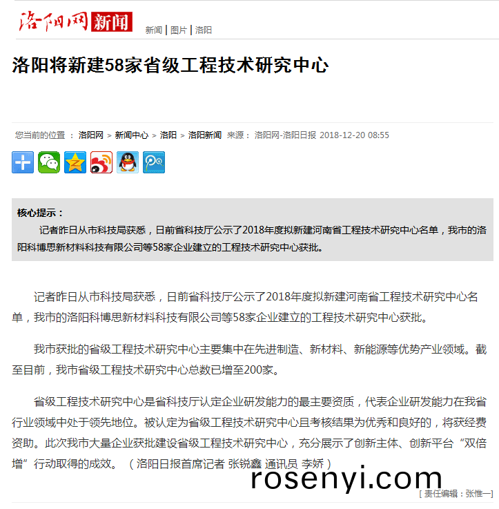 熱烈祝賀我公司穫批爲(wei)2018年度河南省工程(cheng)技術研究中心