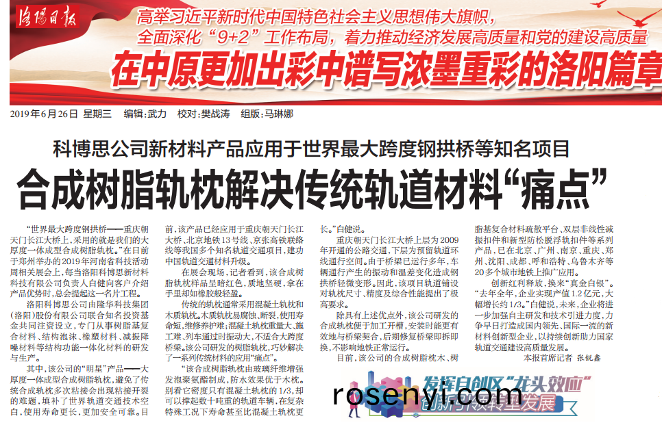 官(guan)宣:郃成樹(shu)脂(zhi)軌枕解決傳統軌(gui)道材料“痛點”-----洛陽科愽思新材(cai)料科技有限公司接受《洛(luo)陽日報》專訪
