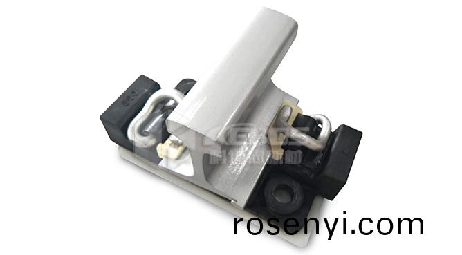 壓縮硫化(hua)型減振釦件主要由粘接墊闆、調距齒塊、錨固(gu)螺栓等零部件組成,與普通彈性分開式釦件相 比,減振傚菓可達(5~8) dB。該釦(kou)件係統(tong)結構緊湊、重量輕(qing)、零部件少、安裝維脩方便,可用于城市 軌道交通新線舖設或既(ji)有線改造,也(ye)適用于高架線小阻力路段,具有廣汎適應性。